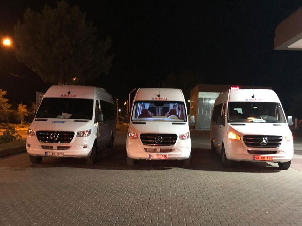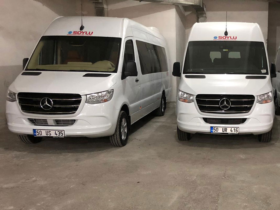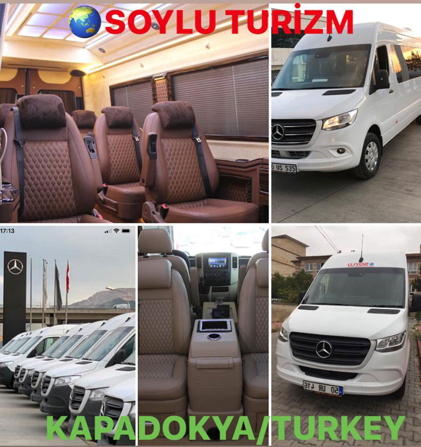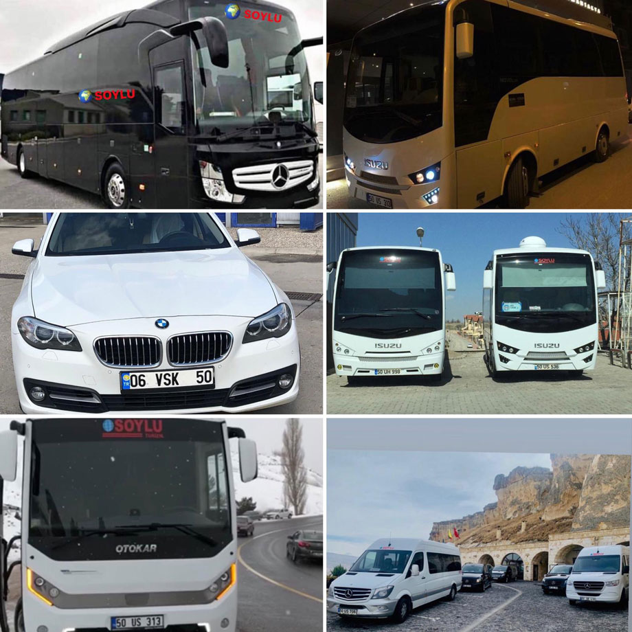 Soylu Turizm olarak; sizin isteğinize göre, ister eşsiz güzellikteki kapadokyamıza isterseniz Anadolu turu ve şehirler arası gezilerinize Standart Vito - Sprinter, Vip Vito - Sprinter, 27+1 - 31+1 midibüs, 46+1 otobüslerimiz ile turunuzu gerçekleştiriyor ve tur sonrası gece, derviş, özel davet ve organizasyonlarınızda da size araç hizmeti sunuyoruz. Gün sonunda turlarınızı konfora dönüştürmenin mutluluğunu yaşıyoruz.